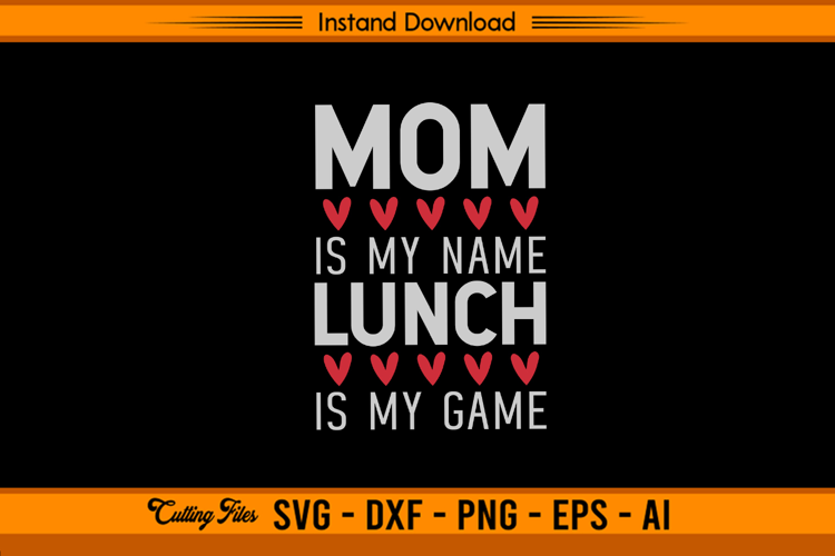 Celebrate hardworking moms everywhere with this Mom Is My Name Lunch Is My Game SVG design! Featuring bold typography with red heart accents, this fun and loving design captures the spirit of every mom who rocks the kitchen, school lunches, and life itself.