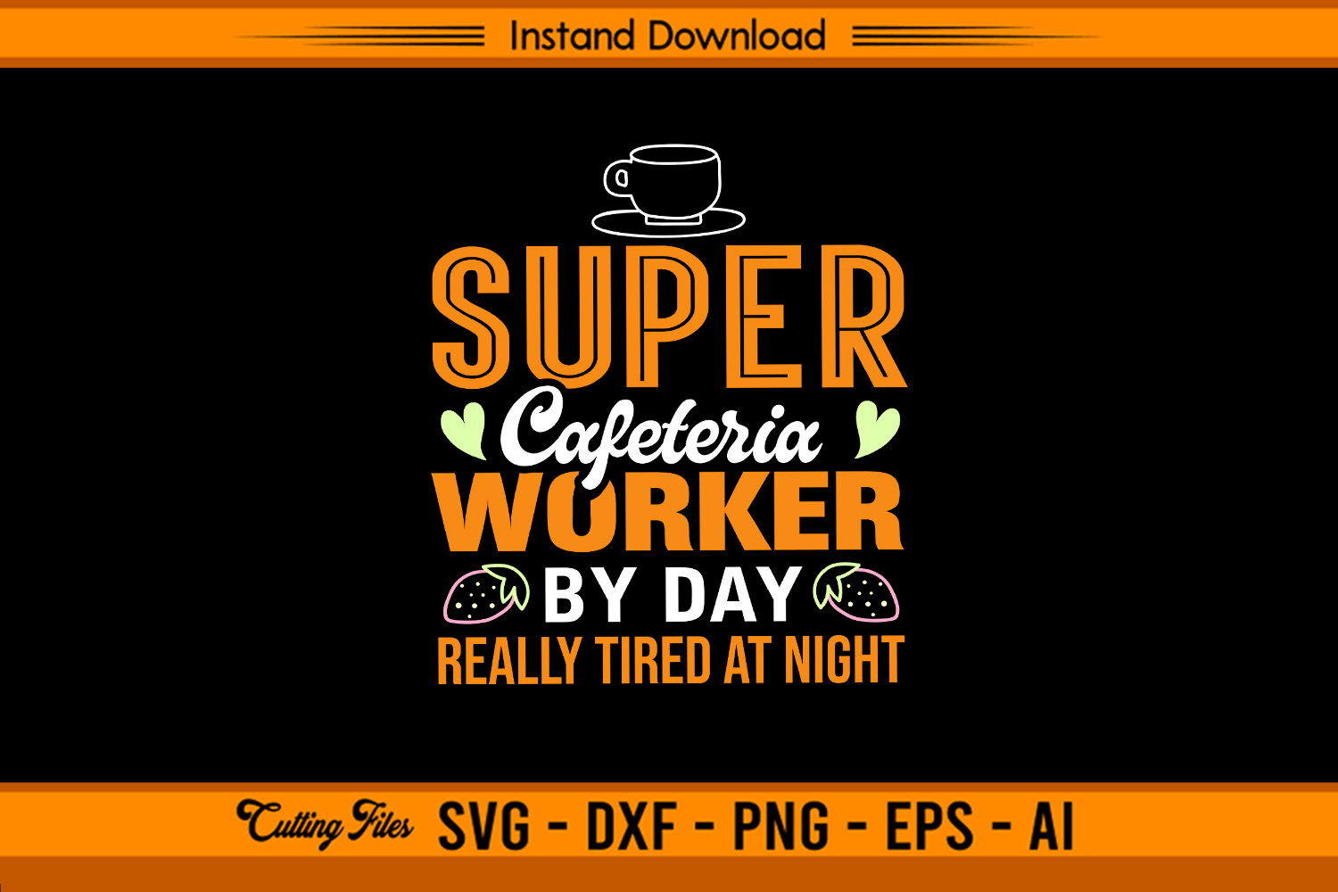 Celebrate the everyday heroism of cafeteria staff with this Super Cafeteria Worker By Day Really Tired At Night SVG! Featuring bold orange lettering with playful coffee and food icons, this design captures the humor and hard work of every dedicated cafeteria worker who gives their best every day.