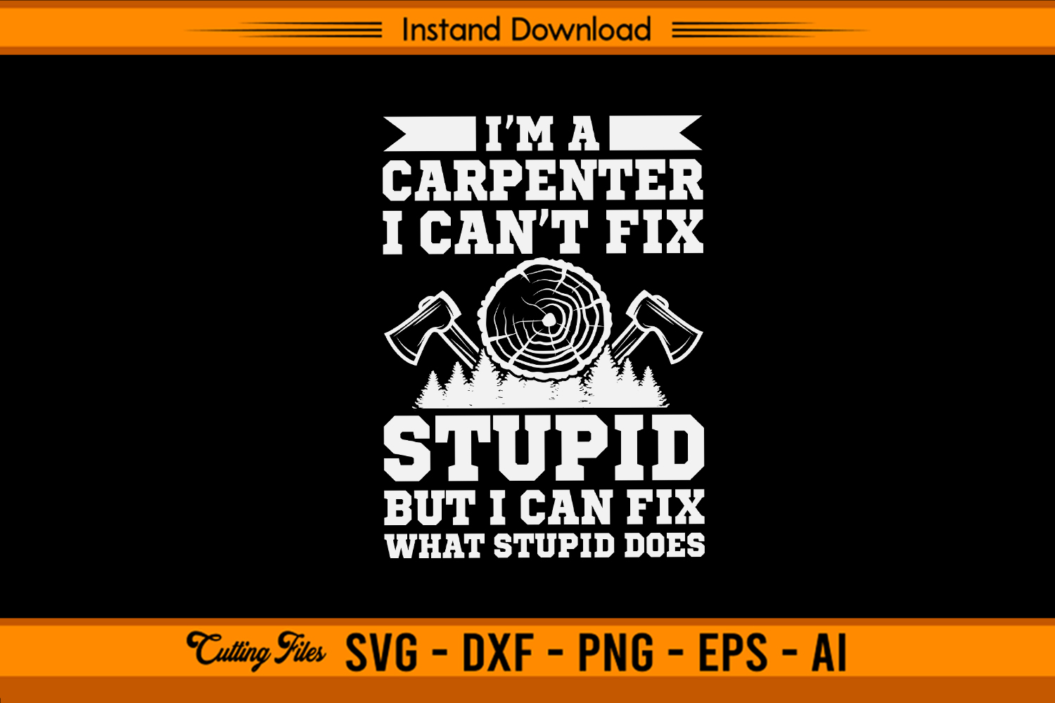 Add humor to your crafting projects with this I’m a Carpenter I Can’t Fix Stupid But I Can Fix What Stupid Does SVG! Featuring bold text, a log cross-section, axes, and pine trees, this design perfectly captures the witty and hardworking attitude of every skilled carpenter. It’s ideal for those who take pride in their work—and have a great sense of humor!