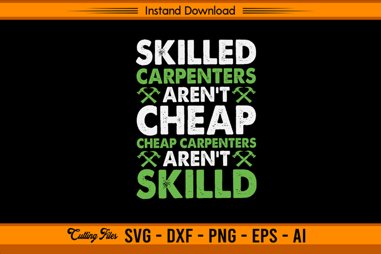 Show pride in your craftsmanship with this Skilled Carpenters Aren’t Cheap SVG! This bold and witty design features distressed lettering with green and white tones and hammer icons that perfectly highlight the truth every carpenter knows—quality work comes from skill, not shortcuts.