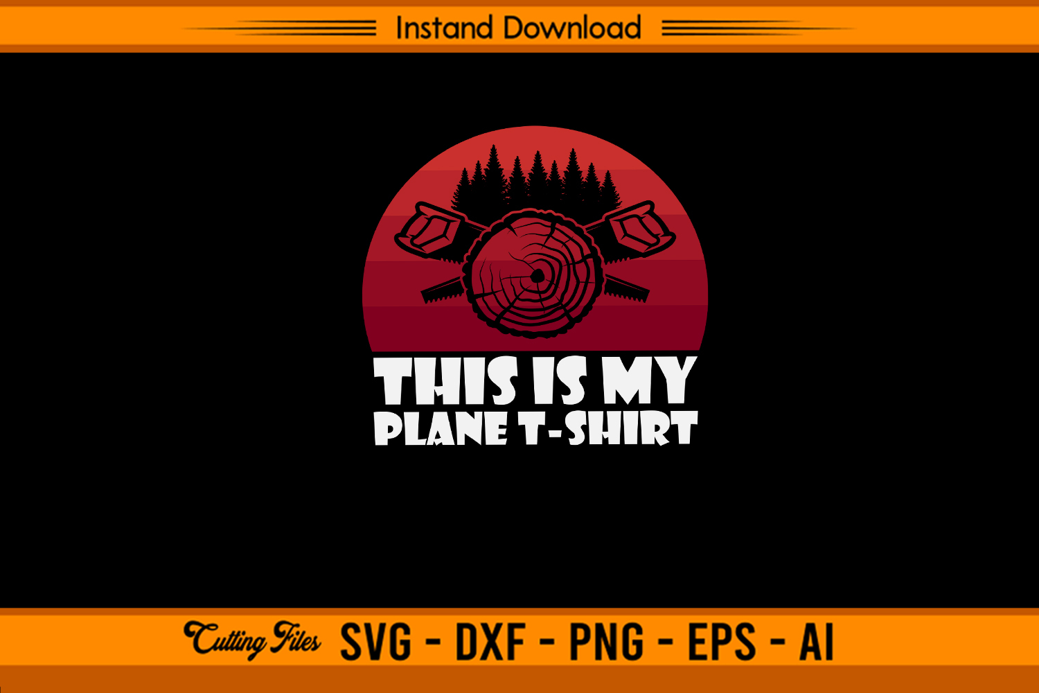 Show your woodworking pride with this This Is My Plane T-Shirt Funny Woodworker SVG! Featuring a vintage red circular background with crossed hand planes, forest silhouettes, and a log illustration, this design perfectly captures the humor and craftsmanship of dedicated carpenters and woodworkers.