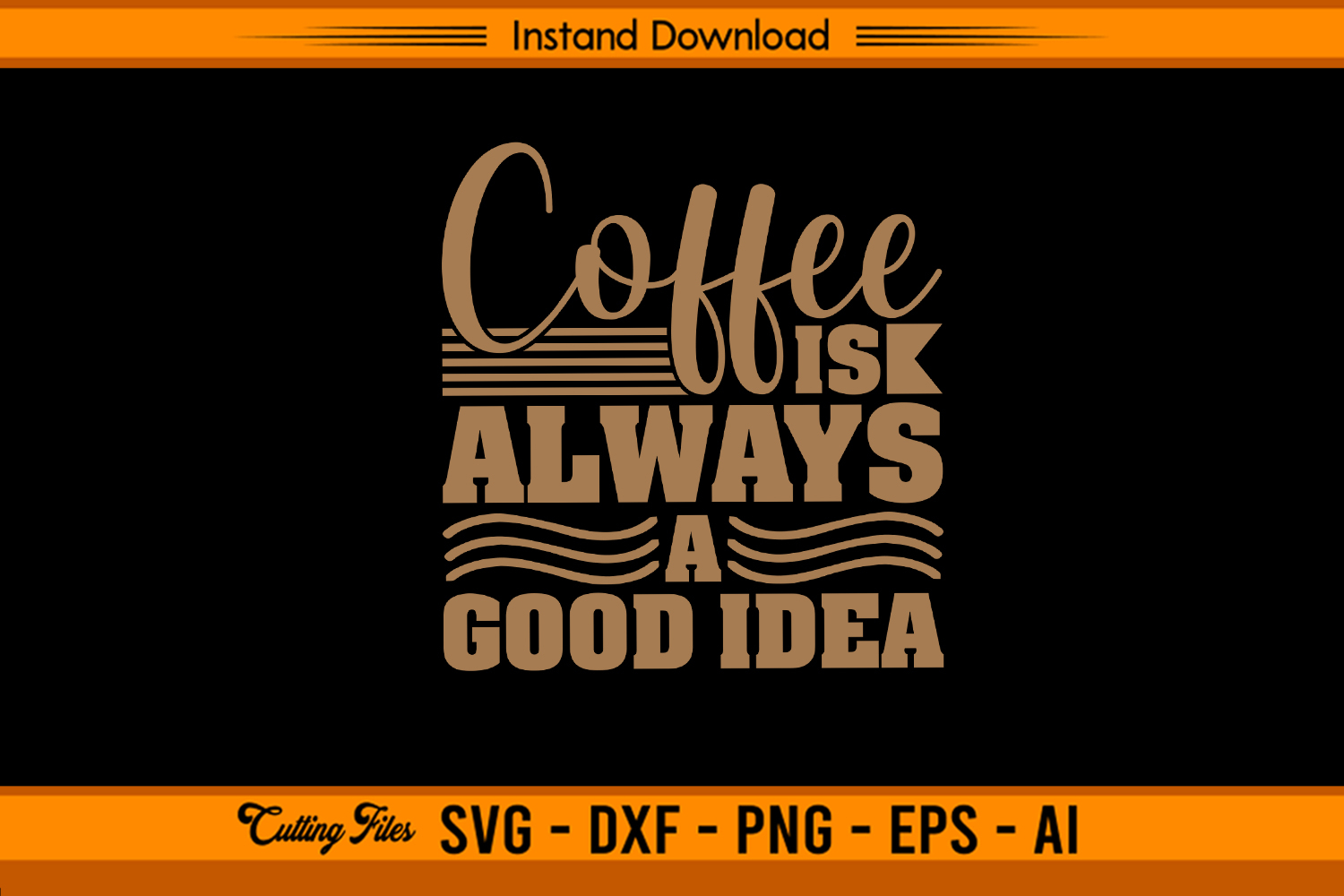 Bring your love for coffee to life with this Coffee Is Always A Good Idea SVG! Featuring a creative mix of bold and script fonts with elegant wavy accents, this design perfectly expresses every coffee lover’s motto. Ideal for mugs, T-shirts, aprons, kitchen décor, or café wall art this design adds warmth and charm to any project.