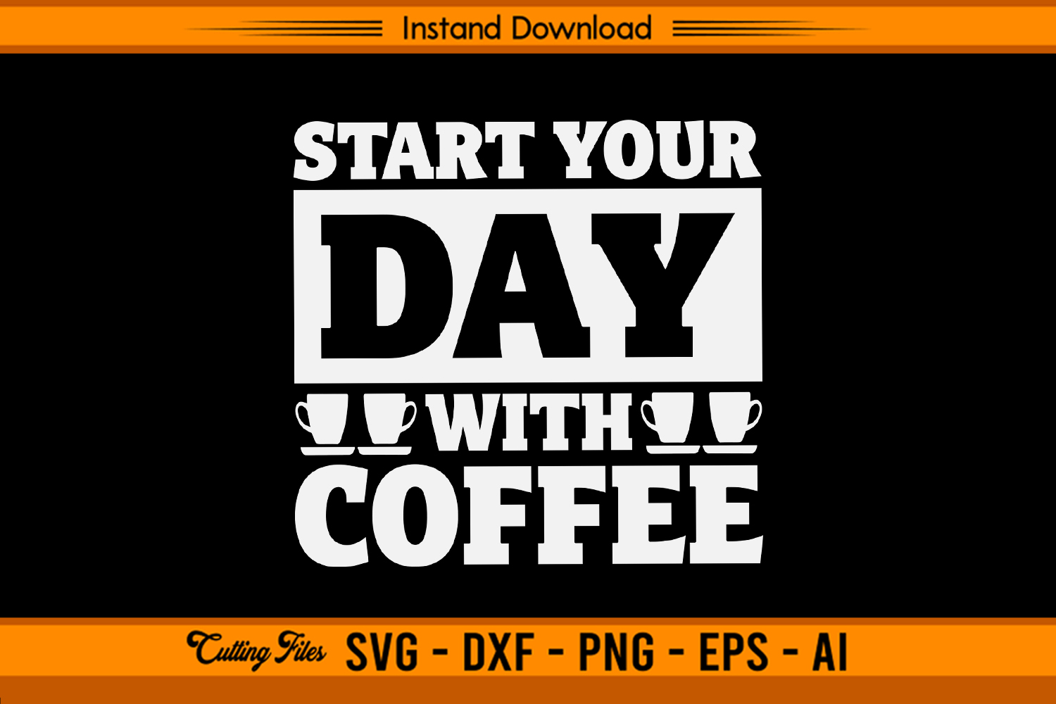 Start your mornings with a smile and a sip of motivation using this Start Your Day With Coffee SVG design! Perfect for coffee lovers who believe every great day begins with a fresh brew. Use it to make t-shirts, mugs, tumblers, tote bags, and kitchen wall art. A great choice for crafting and gift-making for any caffeine enthusiast.