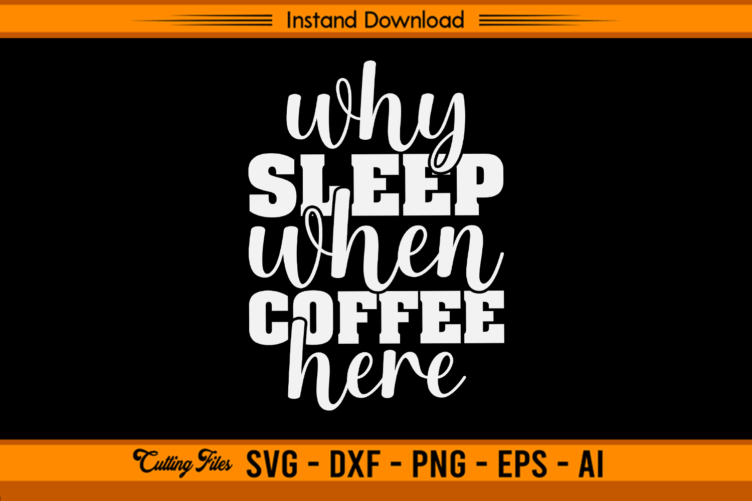 Fuel your mornings with laughter using this Why Sleep When Coffee Here SVG design! Perfect for coffee lovers who believe that sleep is optional when caffeine is available. Use it to create t-shirts, mugs, tote bags, and kitchen wall décor. A great choice for crafting and gift-making for any coffee enthusiast.