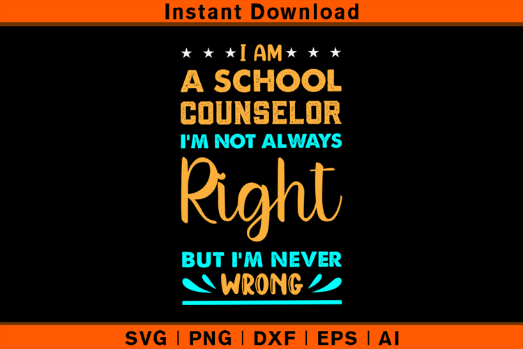 Bring humor to your creations with this I Am A School Counselor I’m Not Always Right But I’m Never Wrong SVG design! Perfect for proud school counselors and educators who love to show off their wit and confidence. Great for making t-shirts, mugs, tote bags, notebooks, stickers, and other fun projects that make everyone smile.