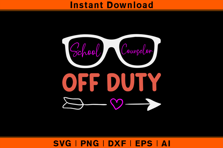 Take a well-deserved break in style with this School Counselor Off Duty SVG design featuring trendy sunglasses, a heart arrow, and a relaxed, fun vibe. Perfect for school breaks, vacations, or weekends when it’s time to unwind and recharge. This playful design is ideal for T-shirts, tote bags, mugs, and summer accessories.
