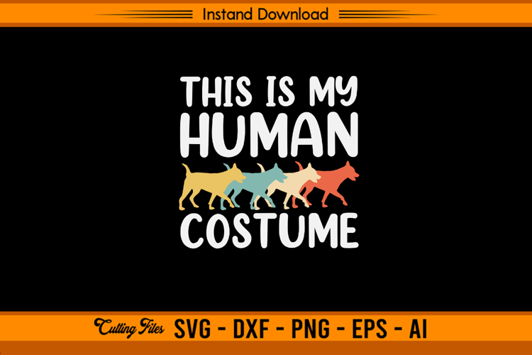 Add humor to your next craft project with this This Is My Human Costume SVG featuring colorful dog silhouettes! Perfect for dog lovers who enjoy playful, lighthearted designs, this file is great for shirts, hoodies, mugs, tote bags, and other DIY creations.