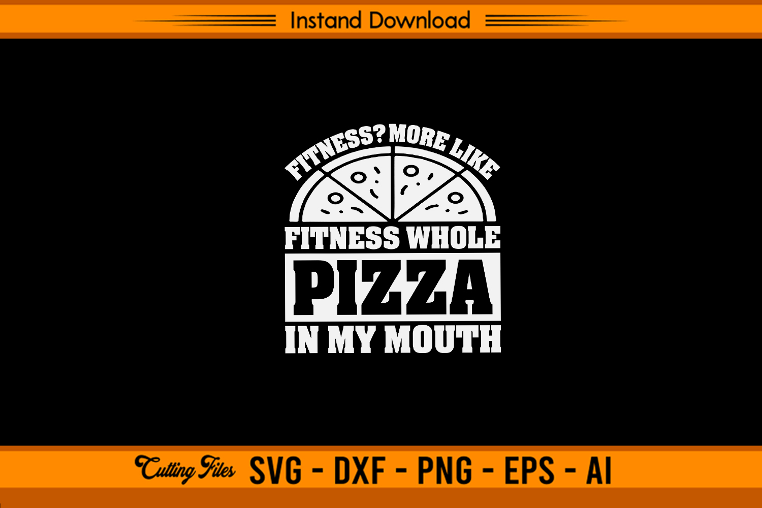 Show your love for both fitness and food with this hilarious Fitness Whole Pizza In My Mouth SVG design! Featuring a pizza illustration and the witty quote “Fitness? More like fitness whole pizza in my mouth,” this artwork perfectly blends humor with foodie vibes. Great for creating funny gym shirts, mugs, tote bags, kitchen signs, and more.