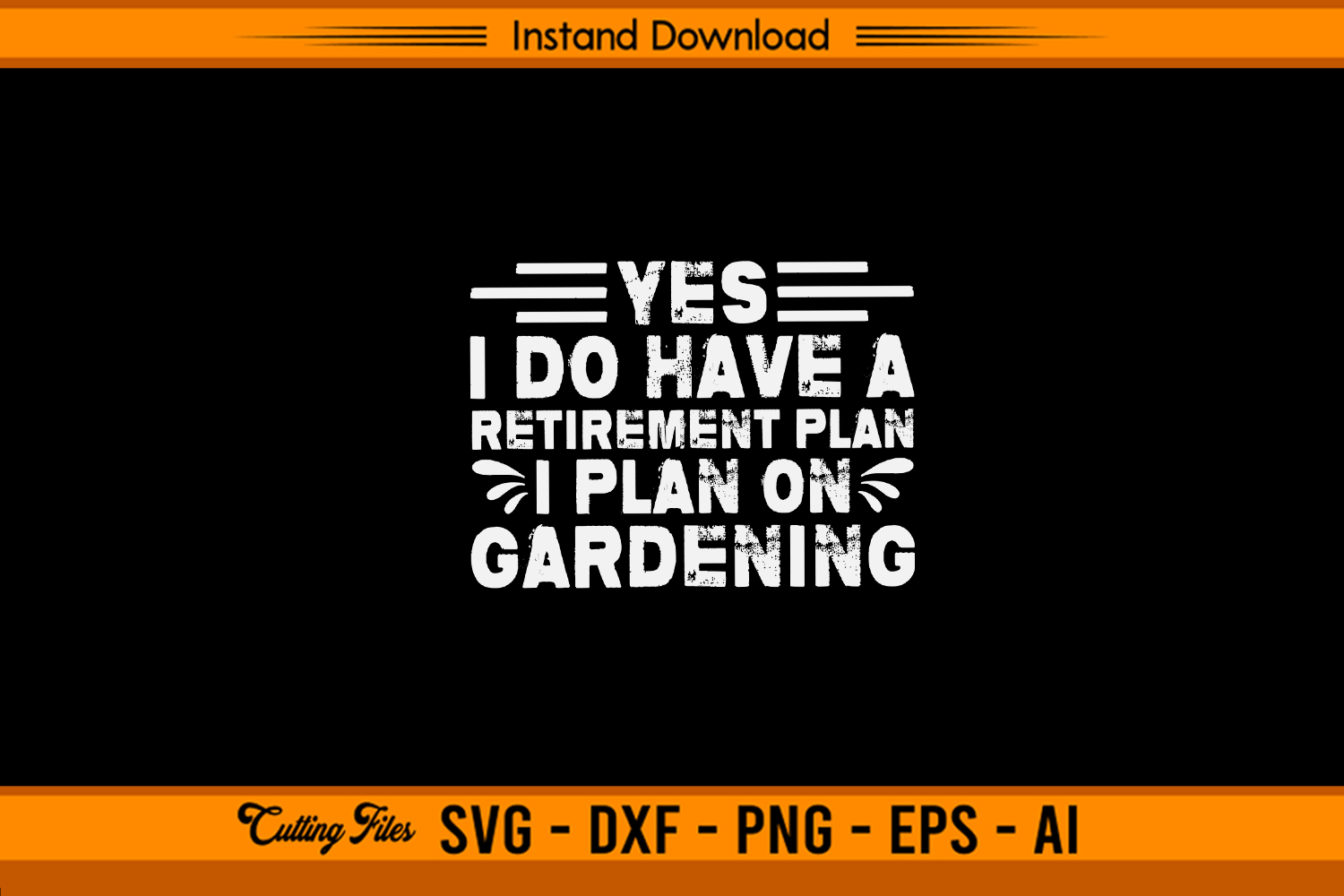 This Yes, I Do Have a Retirement Plan— I Plan on Gardening SVG design features a bold distressed font and playful layout, perfect for gardeners who dream of spending their retirement in the garden. Ideal for crafting t-shirts, mugs, tote bags, and wall décor. Perfect for all USA popular holidays and occasions including Thanksgiving, Christmas, Halloween, Easter, New Year, Valentine’s Day, Mother’s Day, Father’s Day, weddings, birthdays, anniversaries, and seasonal celebrations.