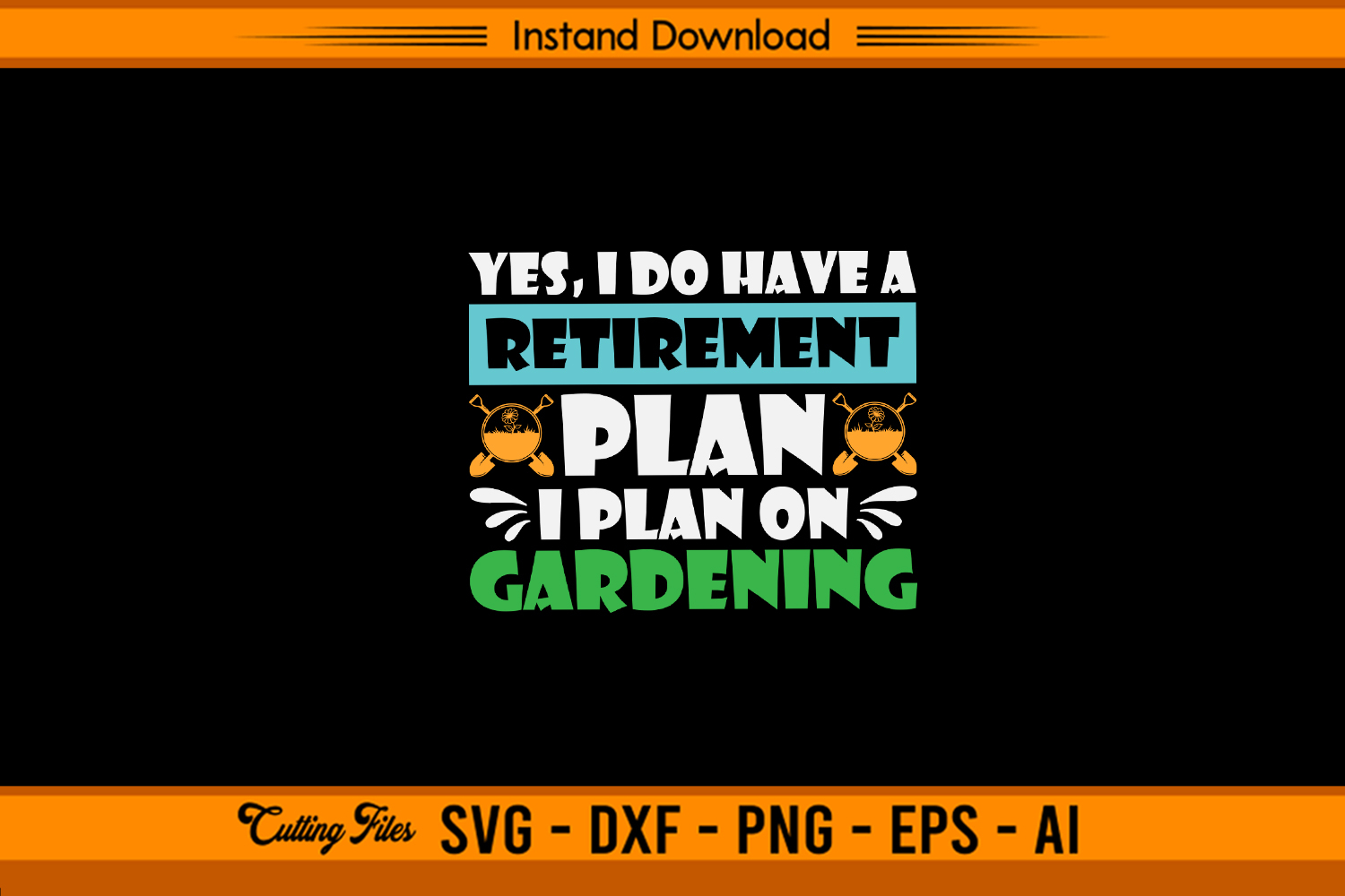This Yes, I Do Have a Retirement Plan I Plan on Gardening SVG design is perfect for gardeners who dream of spending their golden years surrounded by plants. Featuring bold, colorful text and garden-themed icons, it’s great for t-shirts, mugs, tote bags, signs, and DIY crafts. Perfect for all USA popular holidays and occasions including Thanksgiving, Christmas, Halloween, Easter, New Year, Valentine’s Day, Mother’s Day, Father’s Day, weddings, birthdays, anniversaries, and seasonal celebrations.