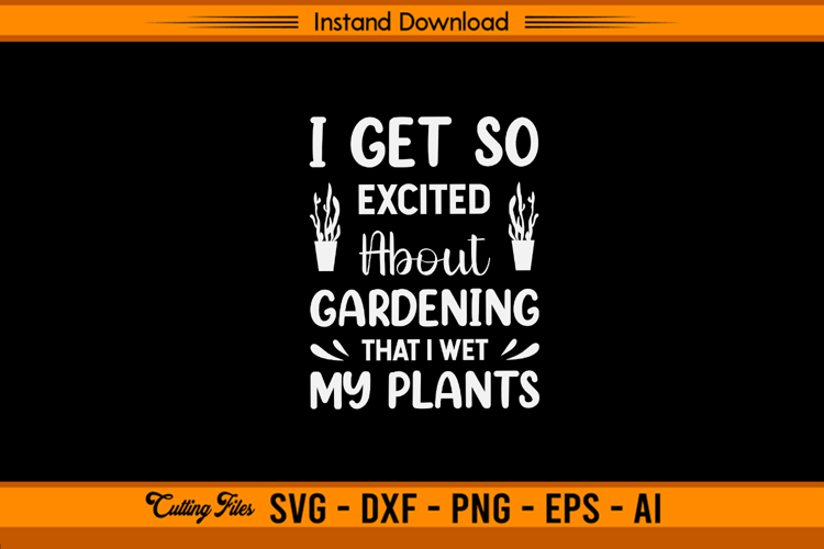This I Get So Excited About Gardening That I Wet My Plants SVG design is a hilarious choice for garden lovers with a sense of humor! With playful typography and cute plant pot graphics, this file is perfect for shirts, mugs, aprons, tote bags, and more. Ideal for USA popular holidays and occasions such as Thanksgiving, Christmas, Halloween, Easter, New Year, Valentine’s Day, Mother’s Day, Father’s Day, weddings, birthdays, anniversaries, and seasonal celebrations.