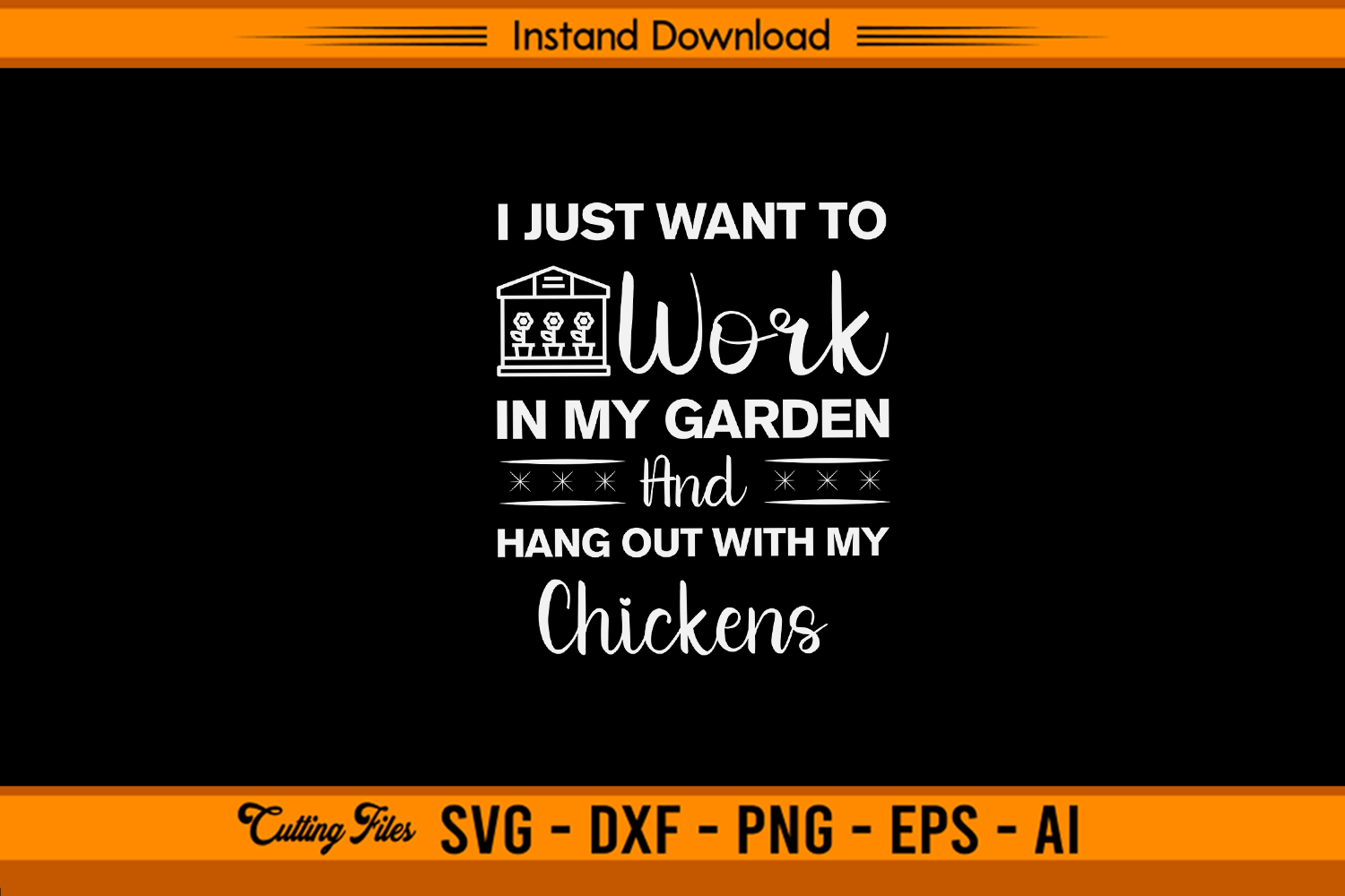 This I Just Want To Work In My Garden And Hang Out With My Chickens SVG design is a perfect choice for farmhouse lovers, chicken keepers, and gardening enthusiasts! The elegant mix of fonts and cute coop illustration makes it great for shirts, mugs, tote bags, aprons, or rustic home décor. Perfect for all USA popular holidays and occasions including Thanksgiving, Christmas, Halloween, Easter, New Year, Valentine’s Day, Mother’s Day, Father’s Day, weddings, birthdays, anniversaries, and other festive celebrations.