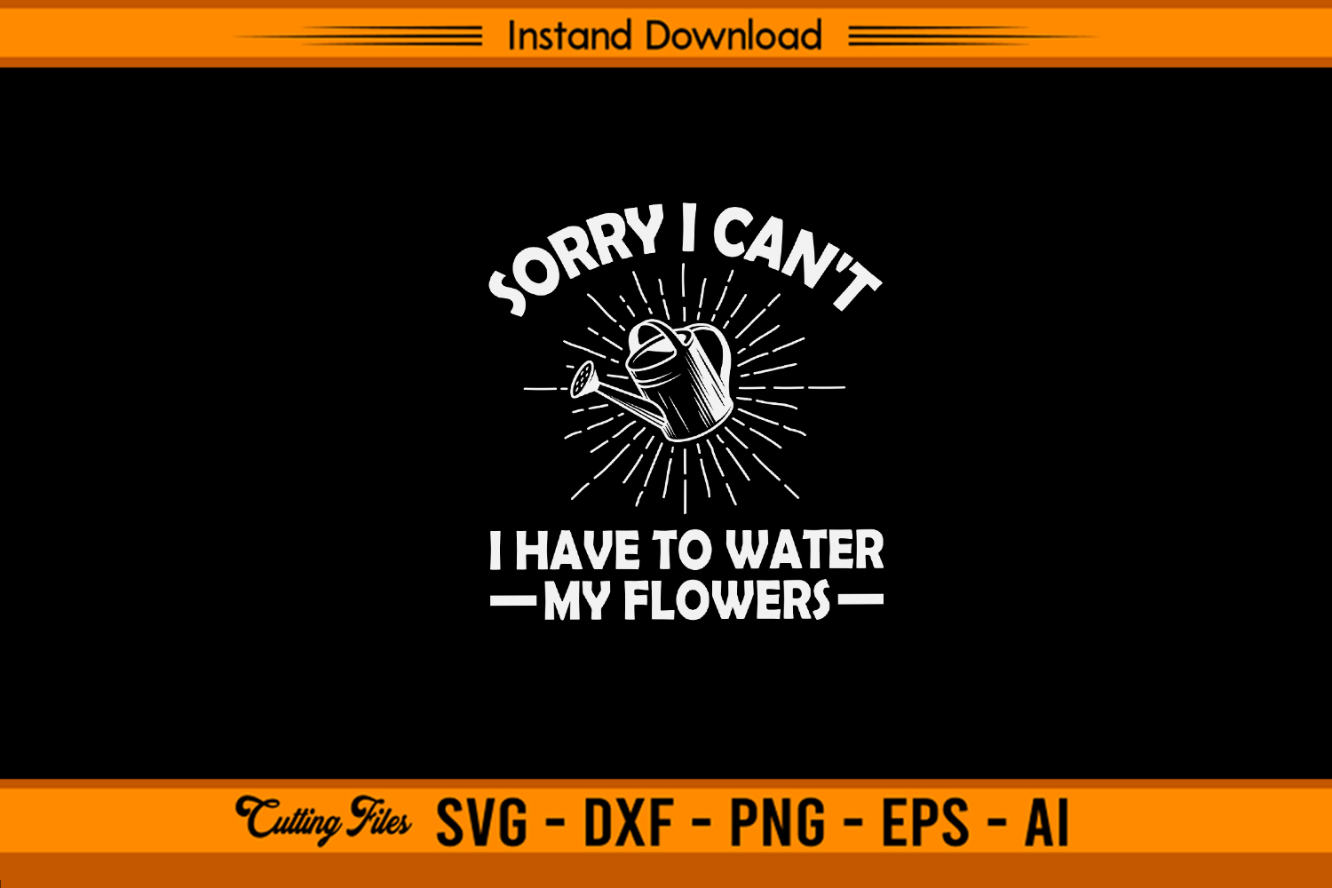 Add some fun to your garden crafting with this Sorry I Can’t I Have To Water My Flowers SVG! Featuring a stylish watering can and radiant burst design, this graphic perfectly captures the humor and love of every devoted gardener. Great for shirts, mugs, tote bags, aprons, and garden signs.