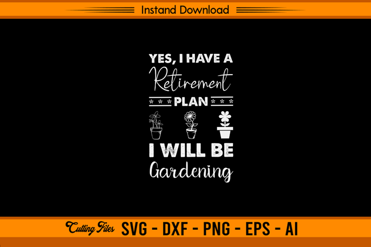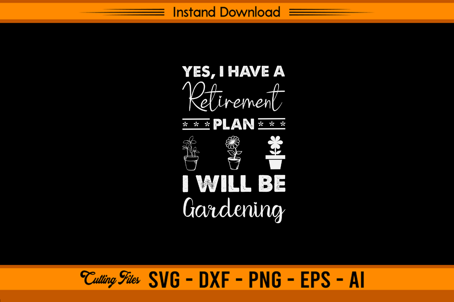 Enjoy your well-deserved rest with this Yes, I Have A Retirement Plan I Will Be Gardening SVG! Featuring a delightful mix of plant pots and playful fonts, this design beautifully captures the dream of spending retirement surrounded by blooms and greenery. Perfect for crafting shirts, mugs, aprons, tote bags, or garden signs.