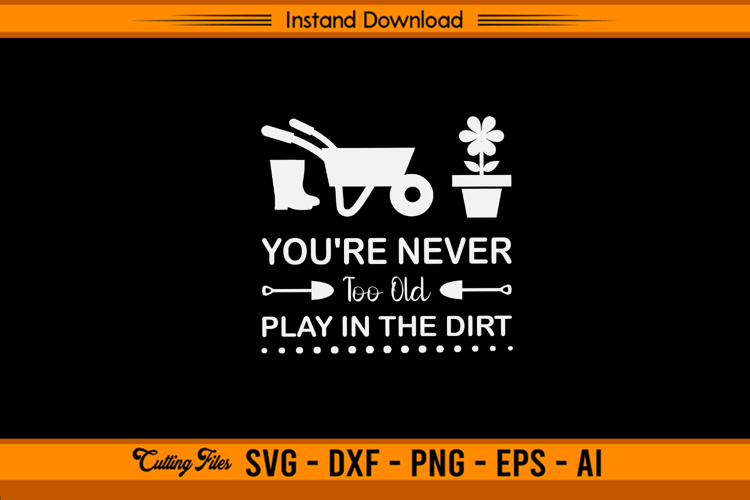 Celebrate your love for gardening with this You’re Never Too Old To Play In The Dirt SVG! Featuring a cheerful wheelbarrow, potted plant, and garden tools, this design perfectly captures the joy of getting your hands dirty and nurturing nature. Great for t-shirts, mugs, aprons, tote bags, and home décor projects.