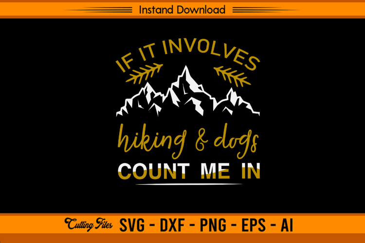 Celebrate your love for the outdoors and furry friends with this If It Involves Hiking & Dogs Count Me In SVG! Featuring elegant mountain art and stylish typography, this design is perfect for dog lovers who enjoy hiking adventures. Ideal for crafting shirts, mugs, tote bags, decals, or home décor that shows your outdoor spirit.