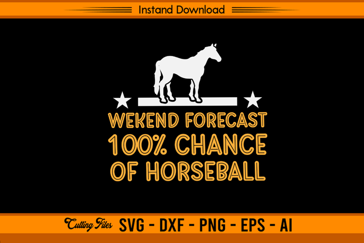 Enjoy the perfect weekend vibes with this “Weekend Forecast 100% Chance Of Horseball” SVG design! Featuring a bold horse silhouette and clean star accents, this artwork is ideal for horseball enthusiasts who live for the game. Perfect for creating t-shirts, mugs, tote bags, or wall décor, it’s a must-have for every equestrian and horseball lover.