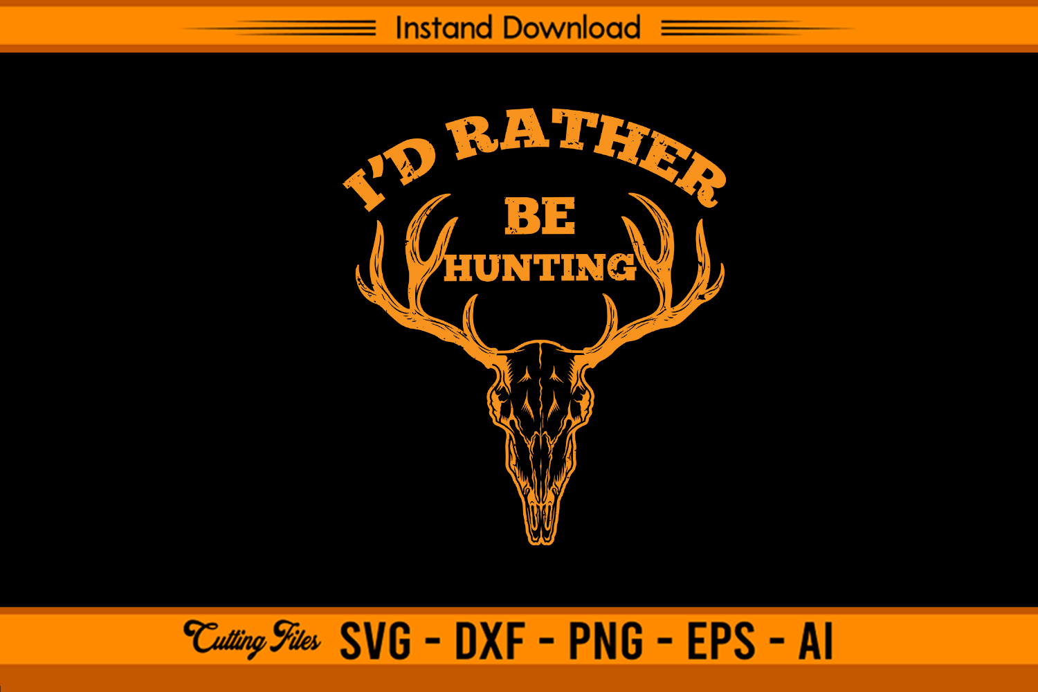 Show off your passion for the great outdoors with this bold “I’d Rather Be Hunting” SVG design. Featuring a detailed deer skull with antlers and rustic text, this graphic is perfect for hunters, campers, and anyone who loves the thrill of the hunt.