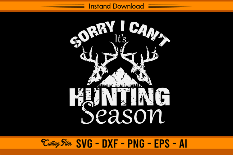 Get ready for your favorite time of year with this “Sorry I Can’t It’s Hunting Season” SVG design. Featuring rugged deer skulls, mountain silhouettes, and distressed text, this bold design is perfect for hunters who live for the outdoors and the thrill of the hunt.