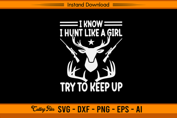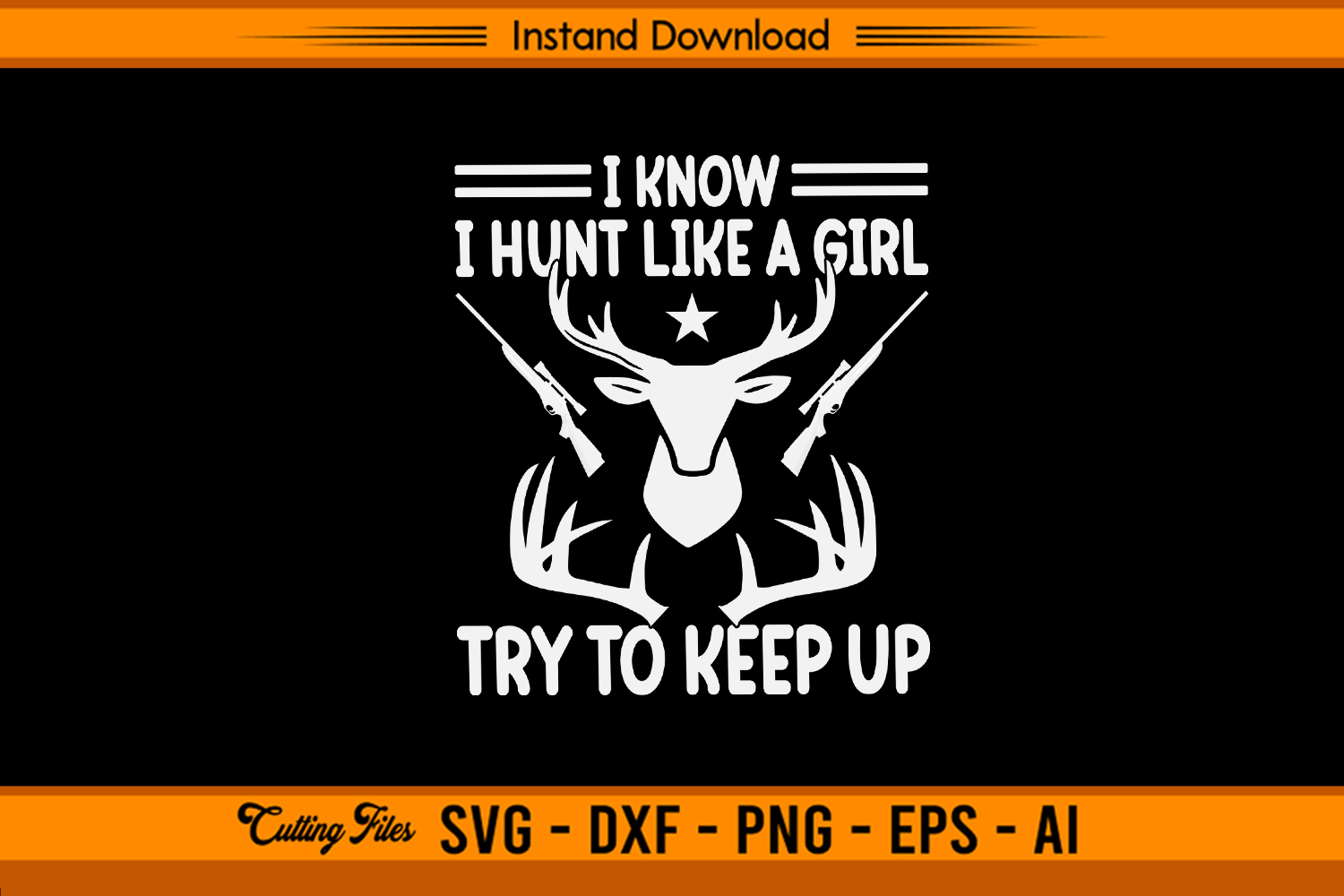 Show your confidence in style with this “I Know I Hunt Like A Girl Try To Keep Up” SVG design. Featuring a bold deer head with antlers, crossed rifles, and strong typography, this empowering hunting design is perfect for women who love the outdoors and take pride in their hunting skills.