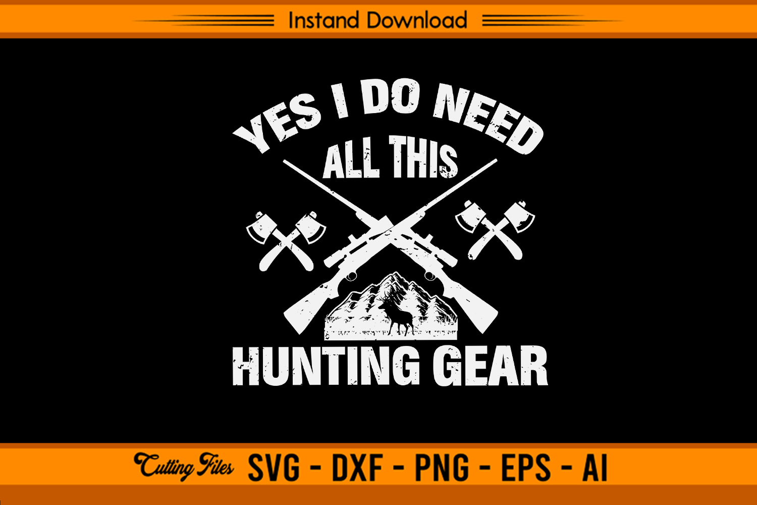 Show your hunting pride with this “Yes I Do Need All This Hunting Gear” SVG design. Featuring crossed rifles, axes, and a majestic mountain scene, this bold graphic is perfect for hunters who love their gear and the thrill of outdoor adventures.