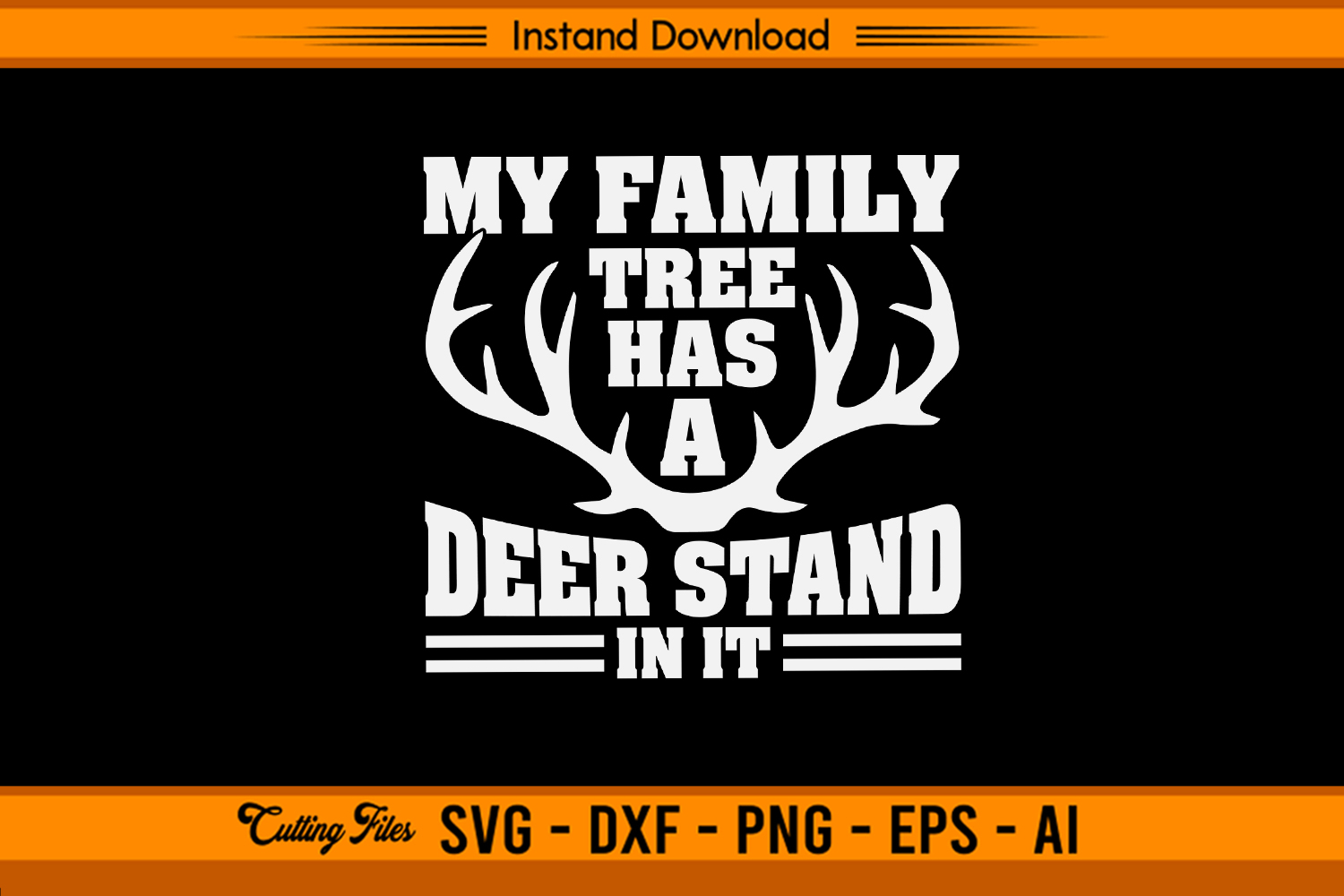 Show off your hunting pride with this “My Family Tree Has a Deer Stand in It” SVG design. Featuring bold typography framed by striking antlers, this design perfectly captures the heritage and humor of hunters who live for the outdoors and family hunting traditions.