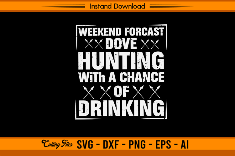 Get ready for the weekend with this hilarious “Weekend Forecast Dove Hunting With a Chance of Drinking” SVG design. Featuring bold, distressed text with crossed arrows, this graphic is perfect for hunters who love mixing fun with their outdoor adventures. It’s the ultimate design for anyone who lives for hunting season and good company.