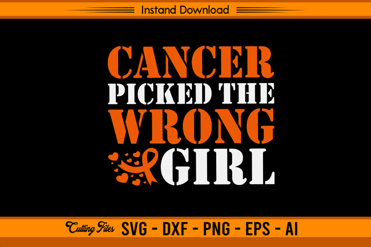 Svg For Cricut Ai Vector File Cancer Fighter Svg Awareness Shirt Svg Cancer Picked The Wrong Girl Svg Cancer Survivor Design Orange Ribbon Svg Leukemia Awareness Svg Leukemia Support Svg Eps Printable Art