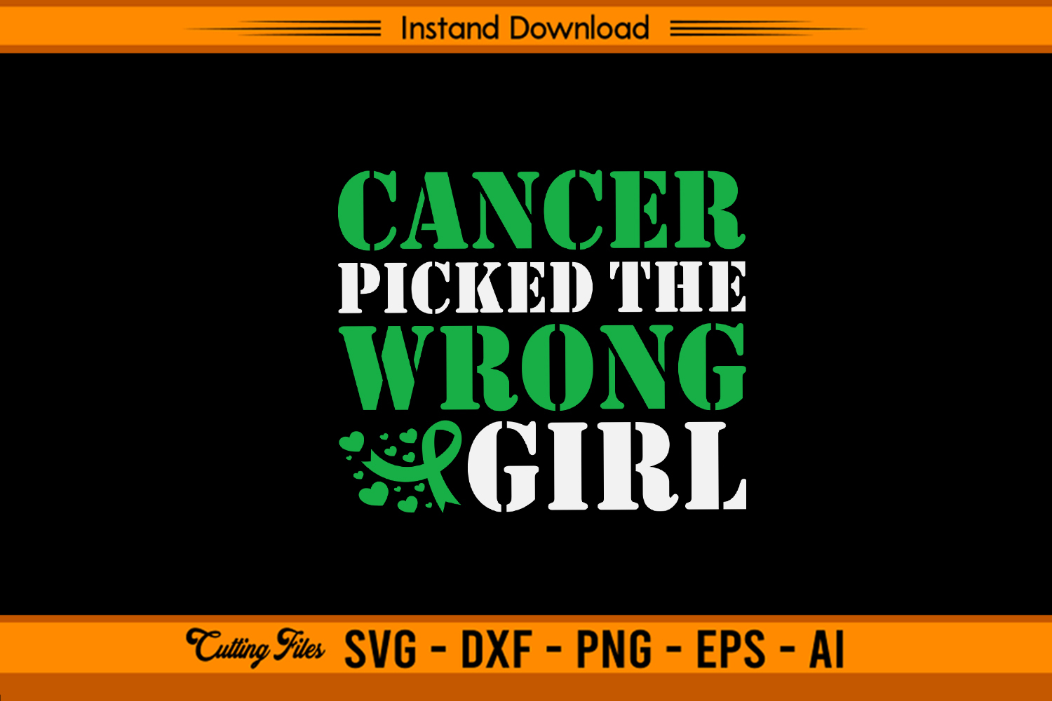 Svg For Cricut Dxf Cutting File Svg For T Shirt Cancer Fighter Svg Green Ribbon Svg Liver Cancer Awareness Svg Eps Vector Art Cancer Picked The Wrong Girl Svg Awareness Design Svg Ai Printable Design