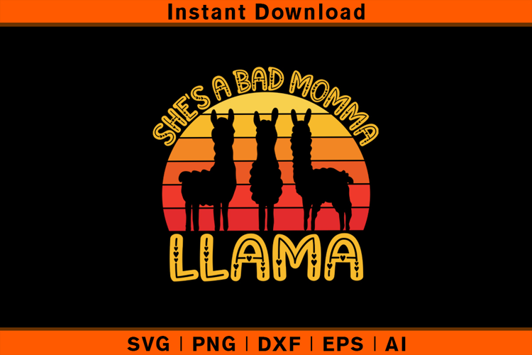 Show off your mom pride with this “She’s a Bad Momma Llama” SVG! Featuring a retro sunset and three cool llamas, this design is perfect for sassy moms, Mother’s Day, birthdays, and fun group shirts. Great for customizing T-shirts, mugs, tote bags, cards, and home décor. This high-quality vector file is easy to use with Cricut, Silhouette, and other cutting machines.