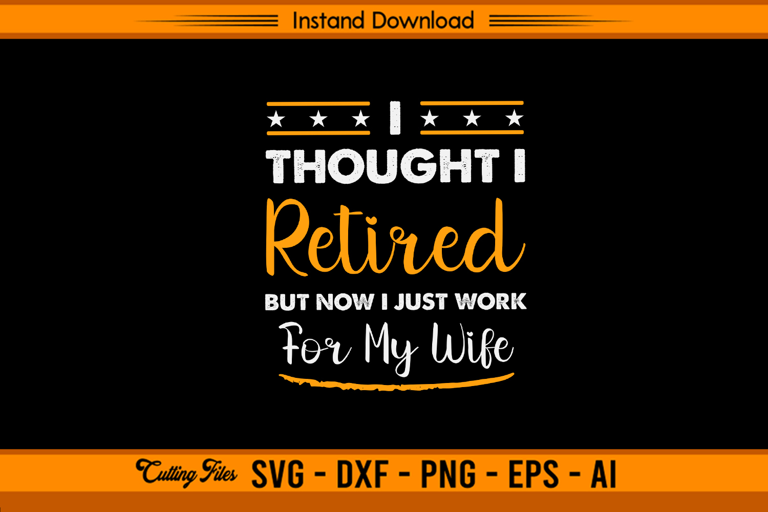 Bring laughter to retirement life with this “I Thought I Retired But Now I Just Work for My Wife” SVG. A perfect design for retired husbands with a sense of humor, great for crafting shirts, mugs, aprons, and cards. Fully compatible with Cricut, Silhouette, and other cutting machines.
