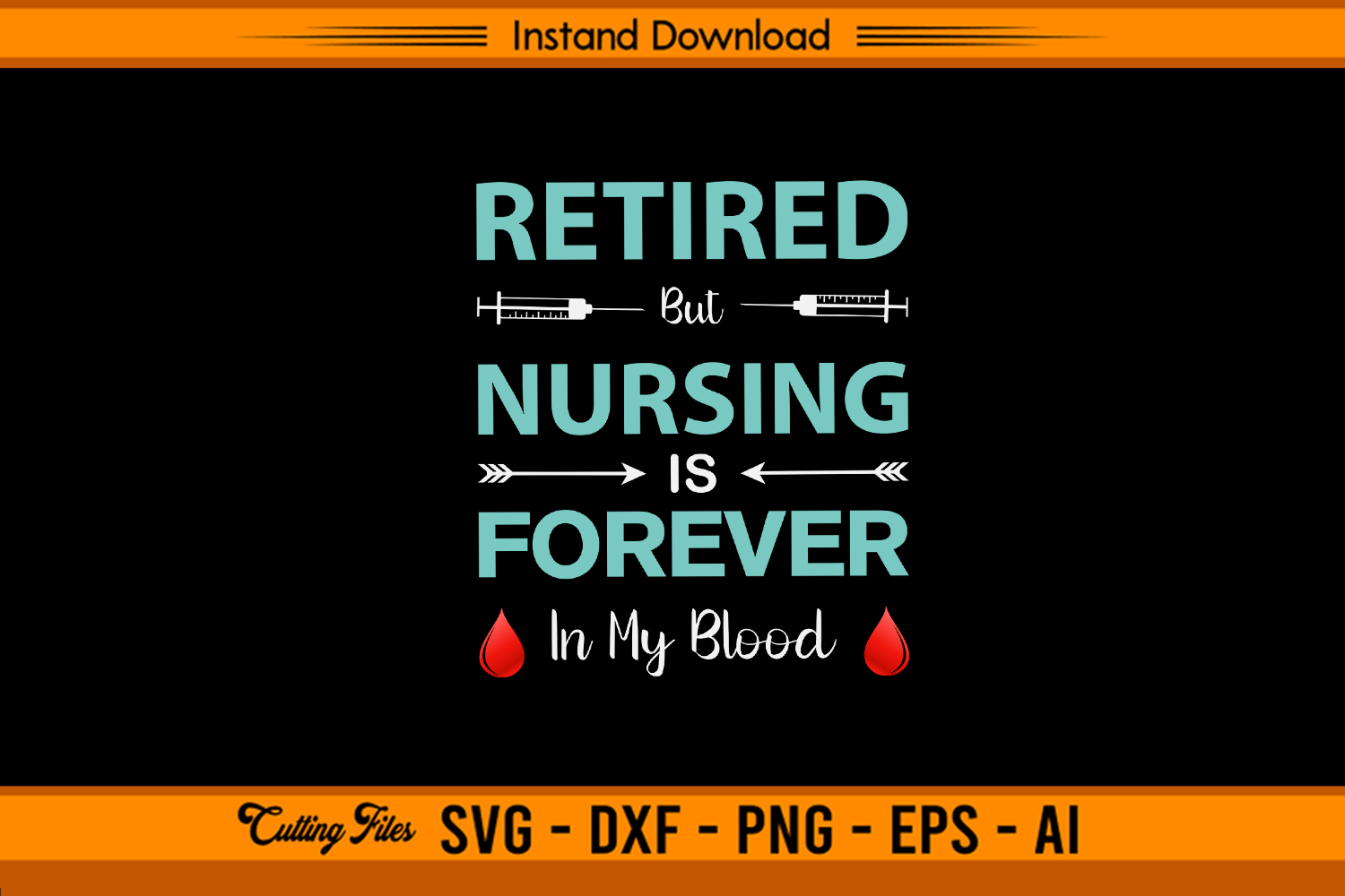 Celebrate your lifelong passion for caring with this Retired But Nursing Is Forever In My Blood SVG design. Featuring bold, clean typography accented with syringes, arrows, and blood drop icons, it captures the dedication that remains even after retirement. Perfect for shirts, mugs, tumblers, tote bags, and home décor projects. Fully compatible with Cricut, Silhouette, and all other major cutting machines.