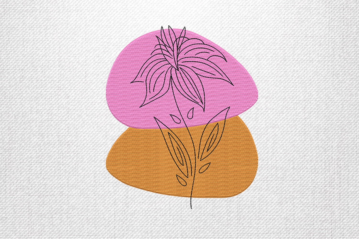 This Minimalist Abstract Floral Line Art Embroidery Design combines simplicity with elegance, featuring a delicate black floral outline over soft pink and orange abstract shapes. Its clean, modern look makes it a perfect choice for contemporary embroidery art lovers.