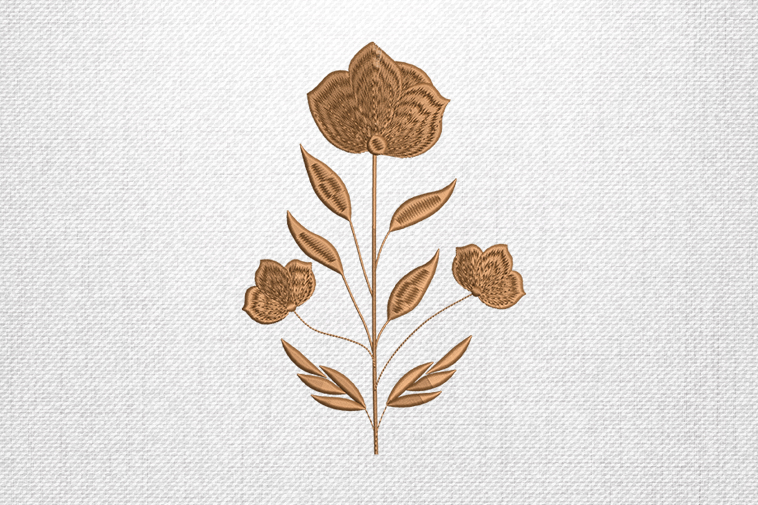 This Elegant Brown Floral Stem Embroidery Design showcases a beautifully detailed flower stem with three blossoms and graceful leaves. The rich brown threadwork adds a natural and timeless touch, making it perfect for classic embroidery projects with a refined aesthetic.