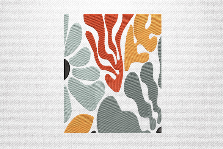 This Modern Abstract Botanical Block Embroidery Design features an artistic mix of flowing shapes in earthy green, orange, mustard, and gray tones. Inspired by natural leaf and coral forms, this design adds a stylish, contemporary feel to your embroidery collection with its bold composition and organic symmetry.