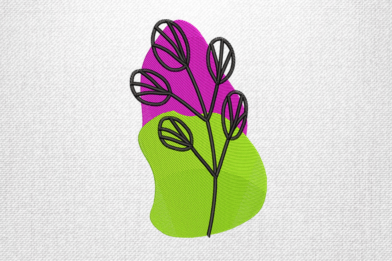 This Modern Abstract Floral Embroidery Design showcases a contemporary artistic branch with bold outlines and vibrant color accents in pink and lime green. The elegant blend of organic shapes and abstract color blocks creates a fresh, modern aesthetic perfect for unique embroidery projects.