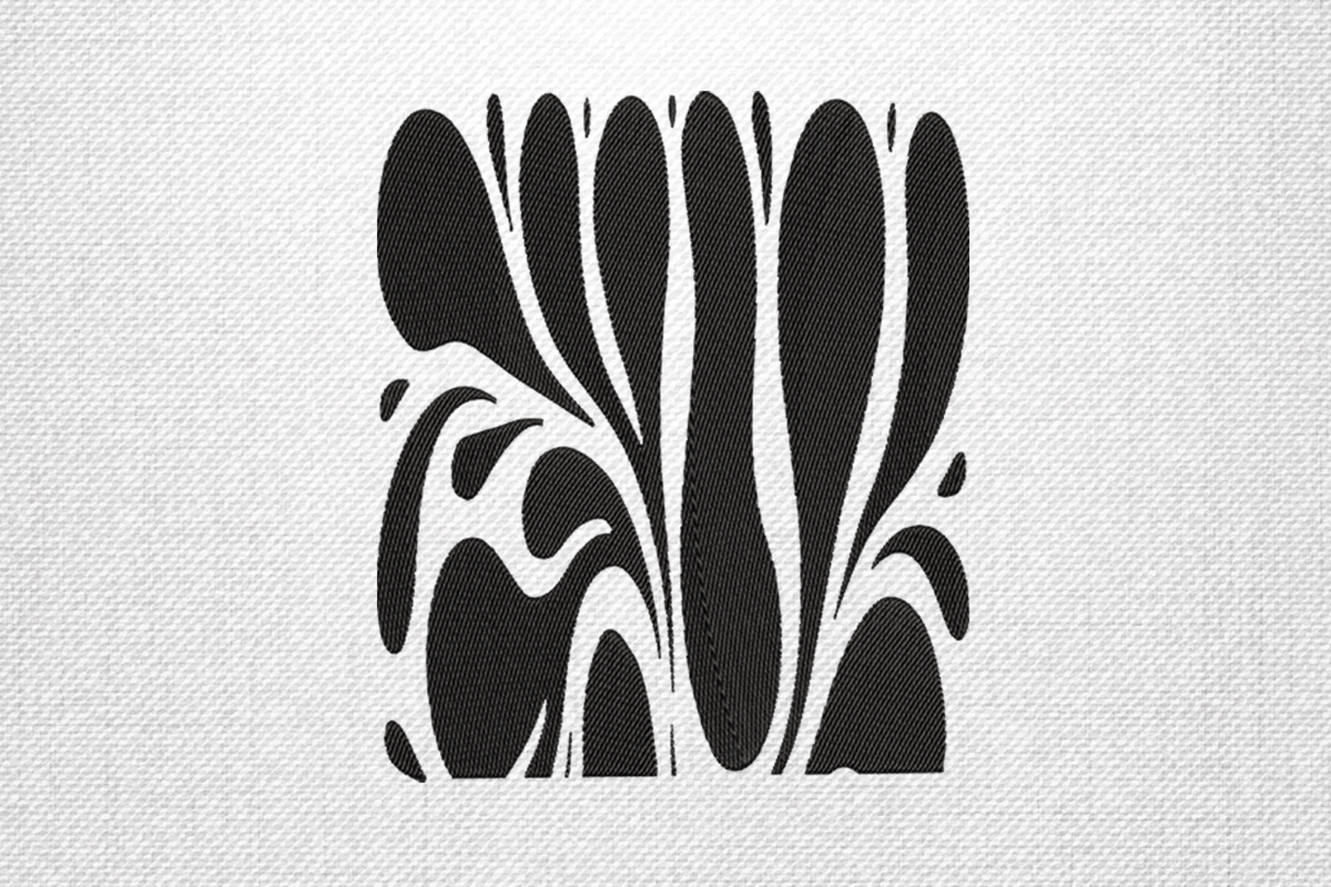 This Abstract Black Fluid Shape Embroidery Design features a modern artistic pattern with bold, flowing black forms that create a stunning visual impact. The abstract organic layout makes it ideal for contemporary embroidery projects and artistic fashion accents.