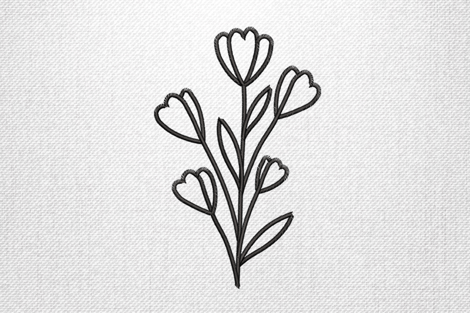 This Simple Line Art Floral Embroidery Design features a clean and elegant arrangement of blooming flowers created with delicate black stitch outlines. The minimalist design brings sophistication and charm, making it ideal for modern embroidery projects inspired by nature.