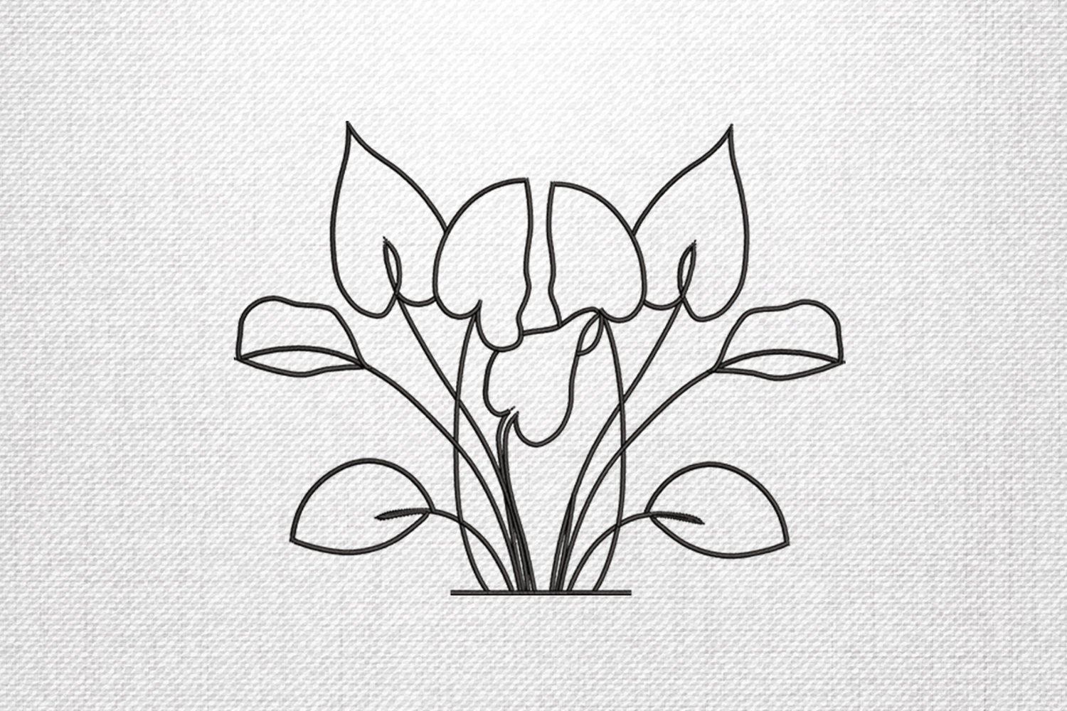 This Geometric Floral Outline Embroidery Design showcases an elegant linear floral arrangement with structured leaves and petal details. The clean outlines and balanced composition make it a perfect minimalist embroidery piece that blends natural beauty with modern simplicity.