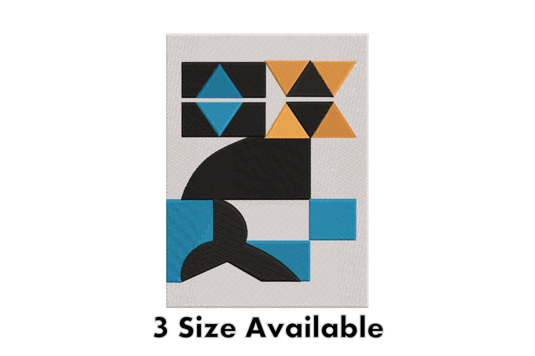 This Geometric Modern Abstract Embroidery Design combines sharp lines and bold shapes in a stylish mix of black, blue, and mustard yellow. The clean composition of triangles, squares, and arcs makes it a perfect choice for those who love structured, contemporary embroidery art.