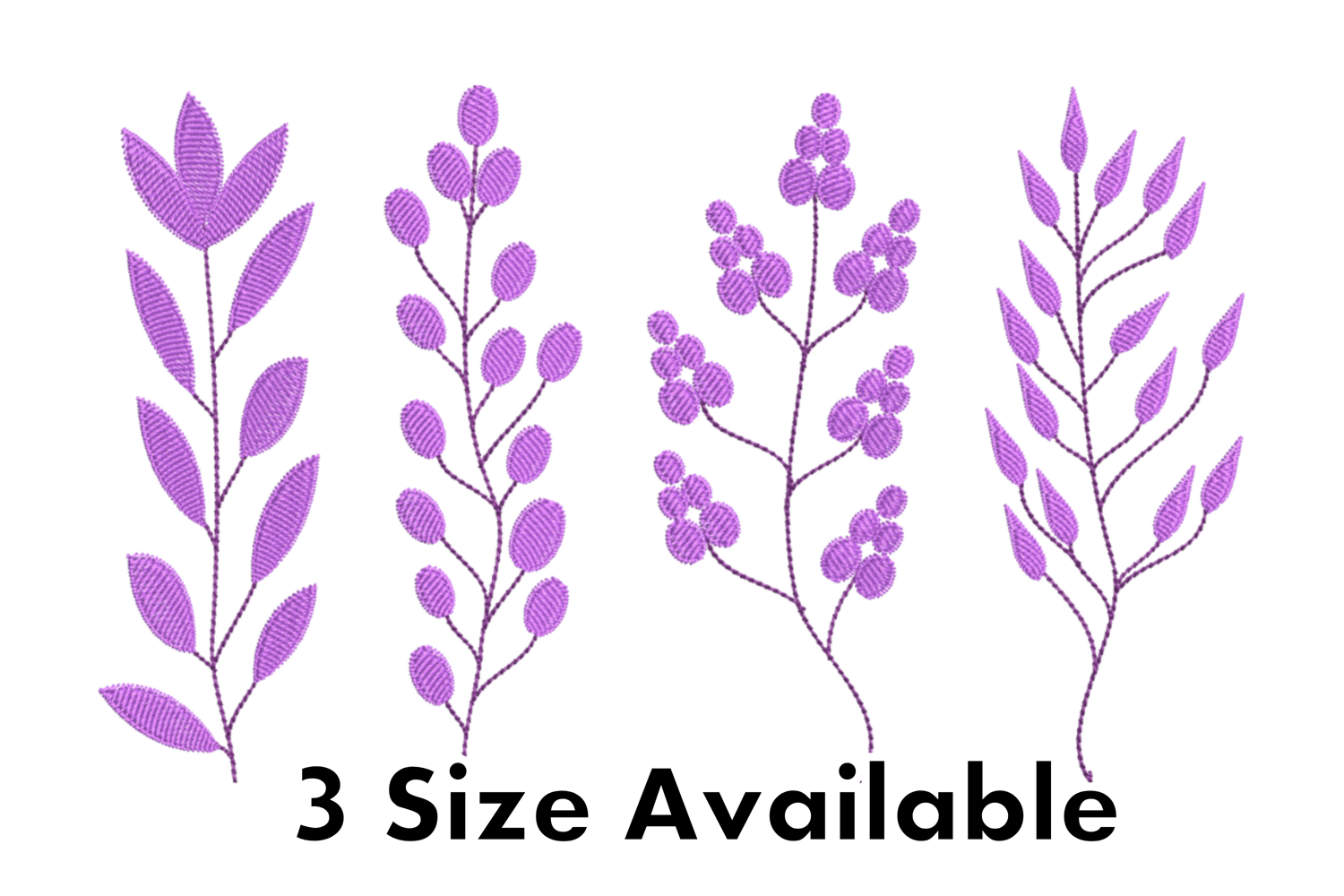 This Lavender Botanical Branches Embroidery Design features four elegant floral motifs inspired by lavender and delicate leafy stems. The soft purple tones and graceful structure bring a modern botanical charm to your embroidery projects.