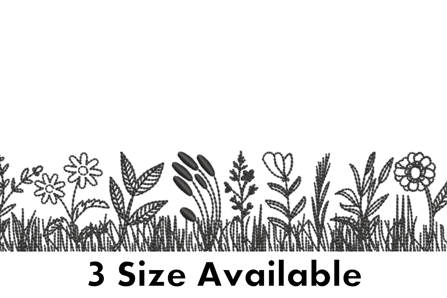 This Wild Meadow Border Embroidery Design beautifully captures a line of delicate flowers, leaves, and cattails stitched in a classic single-color outline style. The elegant detailing creates a natural meadow look, ideal for adding rustic charm to your embroidery projects.