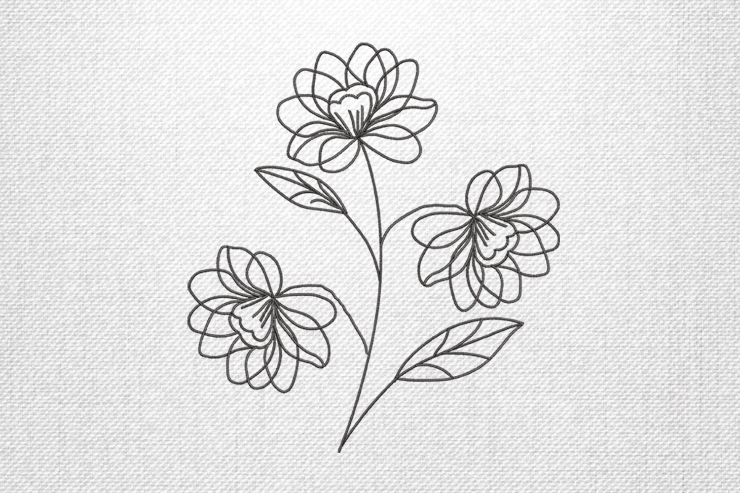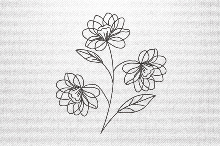 • Elegant triple flower line art embroidery design