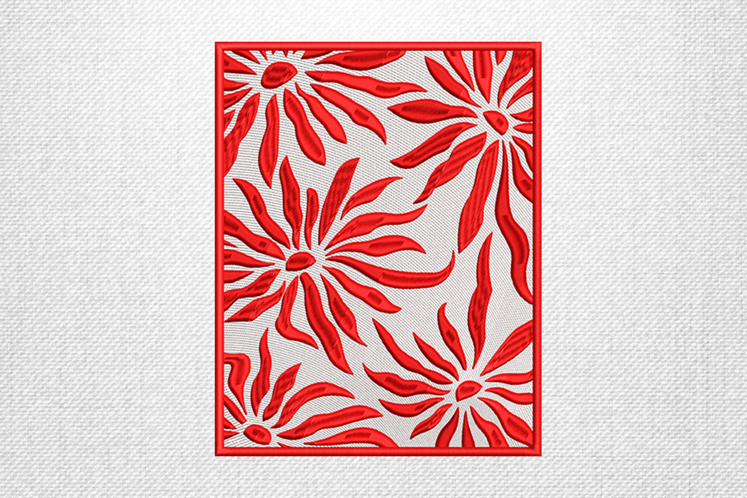 This Bold Red Floral Pattern Embroidery Design features an elegant arrangement of large red flowers with dynamic petals set against a soft background. Its striking contrast and clean stitch detailing make it a perfect choice for statement embroidery projects. Bring a touch of artistic vibrancy to clothing, home décor, or accessories with this eye-catching floral design.