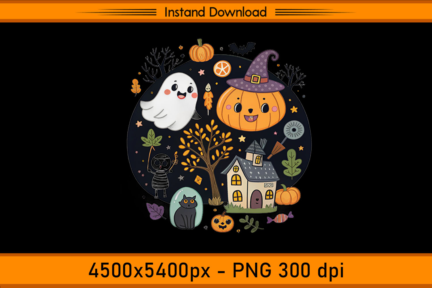 Similar Design Products to Cute Ghost & Pumpkin Halloween Scene Sublimation PNG