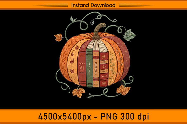 Book Pumpkin Fall Reading Sublimation PNG example image 1