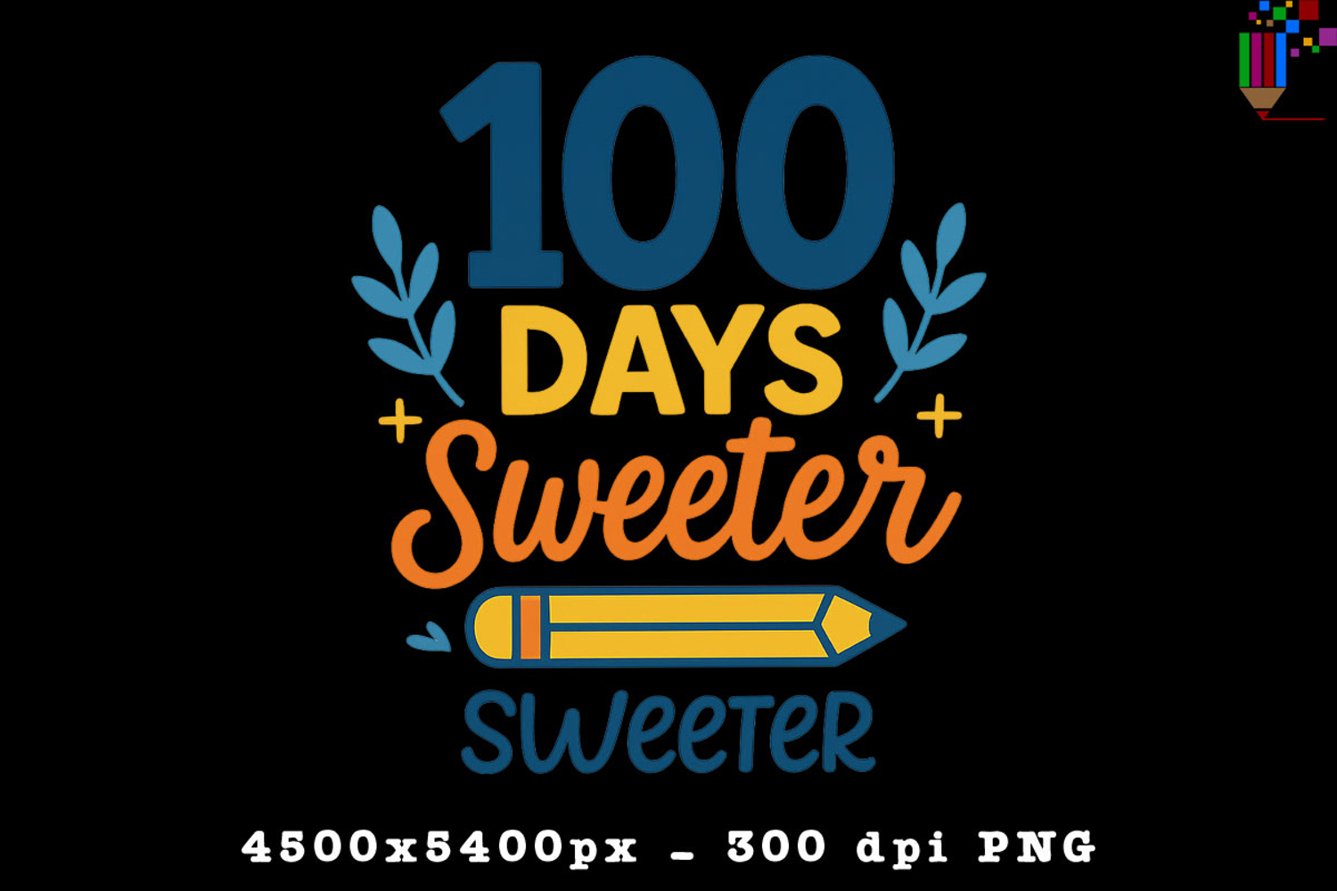 100 Days Sweeter School Celebration Sublimation Design example image 1