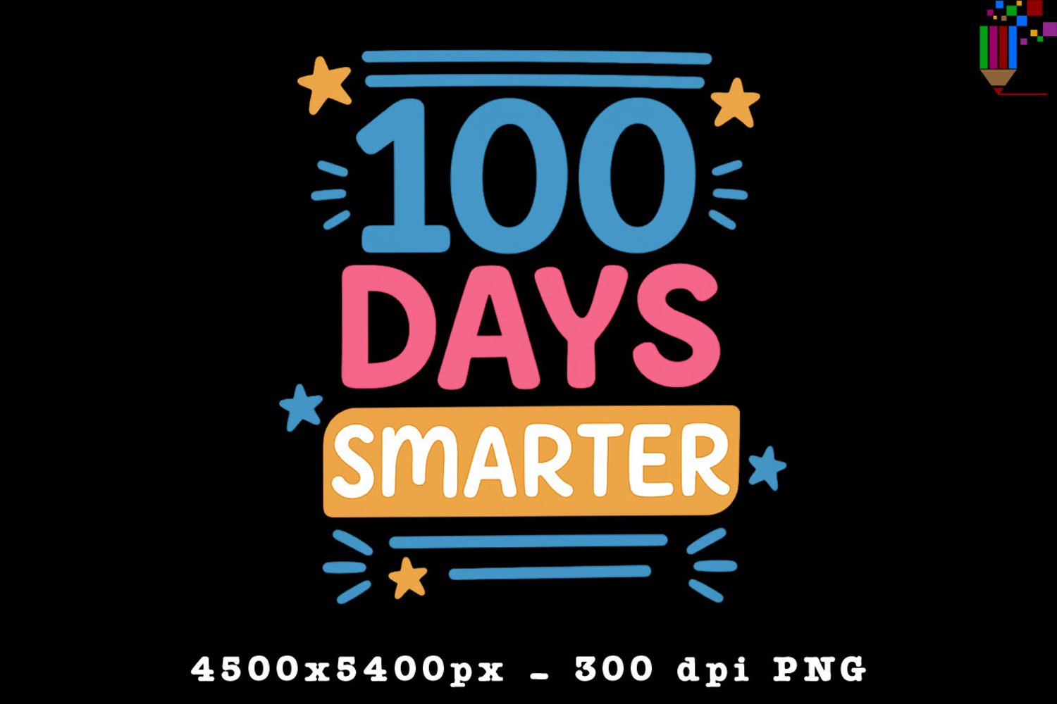 This Adorable 100 Days Smarter Sublimation Design celebrates learning and growth in a fun and colorful way. Featuring bold lettering, stars, and playful highlights, it’s perfect for marking the 100th day of school with joy and pride. Great for teachers, students, and classrooms celebrating this educational milestone.