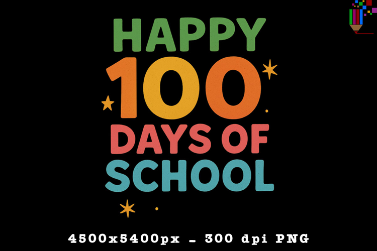 Celebrate a joyful classroom milestone with this cheerful Happy 100 Days of School Sublimation Design! Featuring bold, colorful letters and playful star accents, this design perfectly captures the excitement of reaching 100 days of learning and fun.