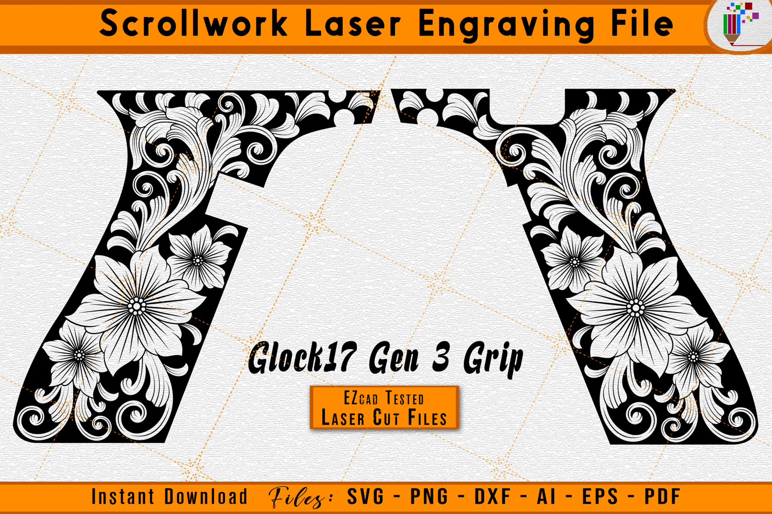 Firearms Scrollwork Design Dxf Eps Cnc Pattern Ezcad Tested Engraving File Instant Download Engraving File Wood Metal Acrylic Scroll Design Firearm Customization Scroll Design Glock 17 Gen 3 Grip Engraving Gun Grip Laser Engraving Svg Custom Scroll Svg For Glock Grip Decorative Grip Engraving Digital File